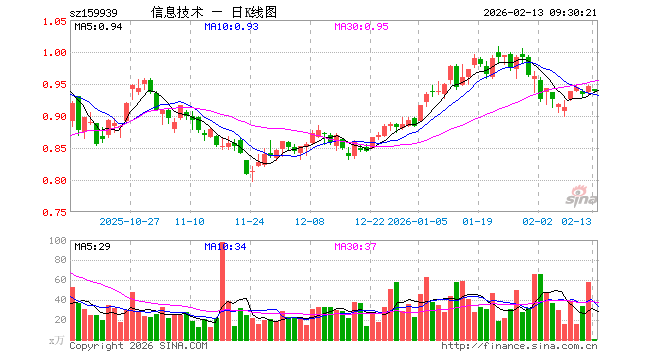 2月13日,信息技术ETF(159939)开盘跌0.42%,报0.942元。信息技术ETF(159939)重仓股方面,立讯精密开盘跌1.03%,寒武纪跌1.12%,工业富联跌1.59%,中芯国际跌0.30%,海光信息跌0.89%,北方华创涨1.00%,胜宏科技跌0.65%,京东方A跌0.47%,兆易创新涨0.00%,澜起科技跌0.78%。