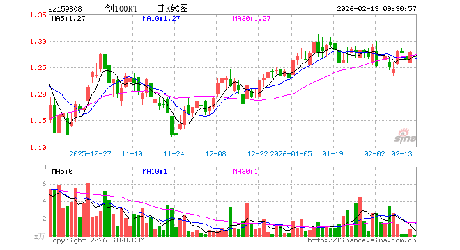 2月13日,创100ETF融通(159808)开盘跌0.63%,报1.270元。创100ETF融通(159808)重仓股方面,宁德时代开盘跌0.07%,中际旭创跌0.66%,新易盛跌1.02%,东方财富涨0.18%,阳光电源跌1.31%,胜宏科技跌0.65%,汇川技术跌0.40%,迈瑞医疗跌0.02%,温氏股份涨0.19%,天孚通信跌1.95%。