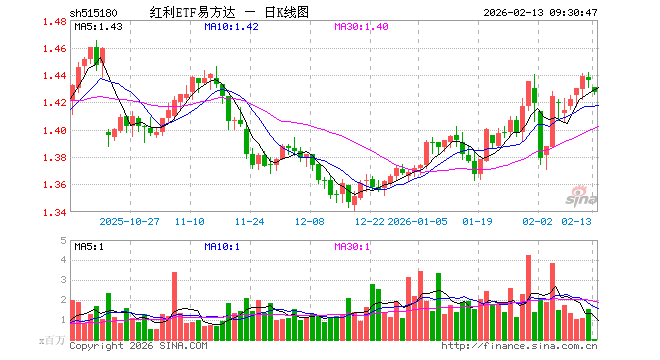 2月13日,红利ETF易方达(515180)开盘跌0.35%,报1.431元。红利ETF易方达(515180)重仓股方面,中远海控开盘涨0.00%,广汇能源跌1.45%,中谷物流跌0.09%,山煤国际跌0.26%,平煤股份涨0.00%,潞安环能跌1.62%,鄂尔多斯涨0.19%,山西焦煤跌0.71%,陕西煤业跌0.47%,藏格矿业跌1.14%。