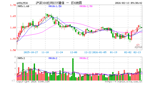 2月13日,沪深300红利ETF建信(512530)开盘跌0.06%,报1.601元。沪深300红利ETF建信(512530)重仓股方面,中远海控开盘涨0.00%,山西焦煤跌0.71%,陕西煤业跌0.47%,藏格矿业跌1.14%,兖矿能源跌1.60%,四川路桥涨0.21%,中国神华涨0.00%,上海银行涨0.40%,兴业银行涨0.05%,华夏银行涨1.21%。