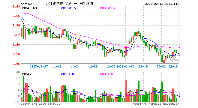 2月13日,创新药ETF工银(516060)开盘涨0.00%,报0.582元。创新药ETF工银(516060)重仓股方面,药明康德开盘跌0.01%,恒瑞医药涨0.03%,华东医药跌0.08%,复星医药跌0.26%,科伦药业涨0.31%,百济神州跌0.19%,长春高新涨0.01%,康龙化成跌0.78%,泰格医药跌0.64%,艾力斯涨0.58%。