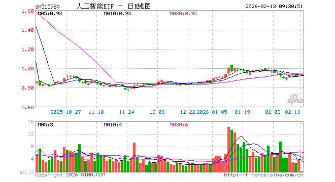 2月13日,人工智能ETF(515980)开盘跌0.53%,报0.934元。人工智能ETF(515980)重仓股方面,中际旭创开盘跌0.66%,新易盛跌1.02%,科大讯飞跌1.59%,寒武纪跌1.12%,金山办公跌0.96%,澜起科技跌0.78%,拓维信息跌0.15%,深信服跌1.97%,芯原股份跌2.78%。