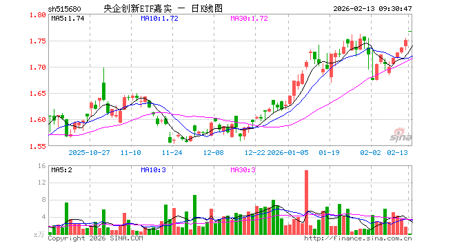2月13日,央企创新ETF嘉实(515680)开盘涨0.97%,报1.767元。央企创新ETF嘉实(515680)重仓股方面,国电南瑞开盘跌0.49%,海康威视跌0.28%,宝钢股份跌0.28%,中国铝业跌1.82%,中国船舶跌0.44%,招商银行跌0.10%,中国建筑涨0.00%,中国中车跌0.31%,中国联通涨0.00%,长江电力涨0.04%。