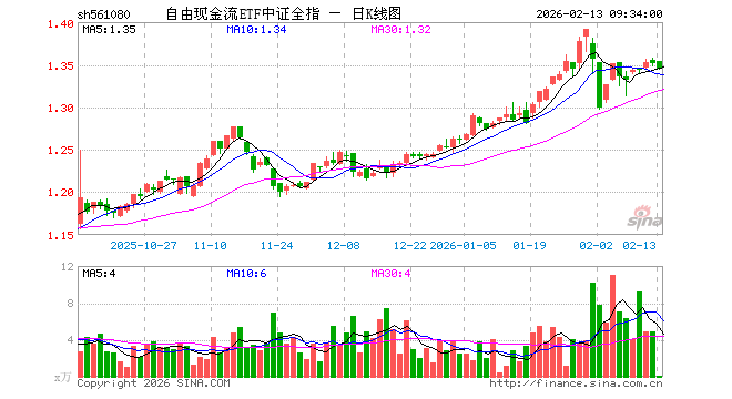 自由现金流ETF中证全指(561080)业绩比较基准为中证全指自由现金流指数收益率,管理人为华安基金管理有限公司,基金经理为许之彦、王超,成立(2025-04-23)以来回报为35.21%,近一个月回报为5.15%。