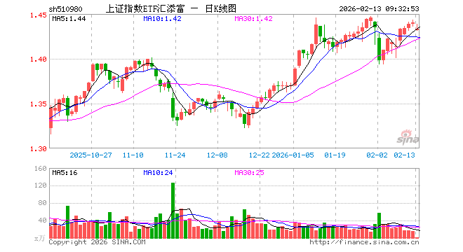 2月13日,上证指数ETF汇添富(510980)开盘跌0.56%,报1.432元。上证指数ETF汇添富(510980)重仓股方面,农业银行开盘涨0.30%,中国银行涨0.19%,中国石油跌2.17%,贵州茅台涨0.00%,工业富联跌1.59%,中国人寿涨0.37%,招商银行跌0.10%,中国平安跌0.59%,中国神华涨0.00%,紫金矿业跌3.75%。