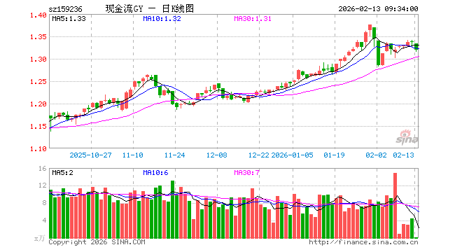 2月13日,自由现金流ETF工银(159236)开盘跌0.22%,报1.333元。自由现金流ETF工银(159236)重仓股方面,中国海油开盘跌2.93%,上汽集团跌0.14%,格力电器涨0.00%,中远海控涨0.00%,牧原股份涨0.00%,中国铝业跌1.82%,TCL科技跌0.22%,宝钢股份跌0.28%,长城汽车涨0.05%,正泰电器跌1.04%。