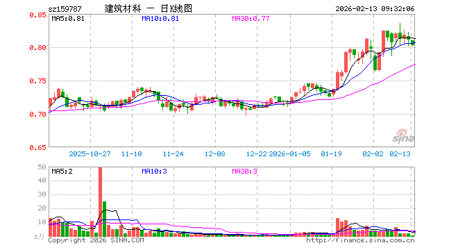 2月13日,建材ETF易方达(159787)开盘跌0.12%,报0.810元。建材ETF易方达(159787)重仓股方面,海螺水泥开盘跌0.08%,东方雨虹跌0.67%,北新建材跌0.04%,华新建材涨0.00%,三棵树跌0.47%,旗滨集团跌0.93%,西藏天路涨0.00%,天山股份涨0.00%,四川双马涨1.49%,塔牌集团涨0.00%。