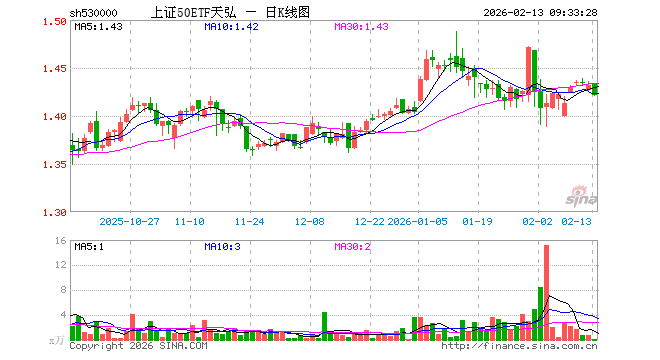 2月13日,上证50ETF天弘(530000)开盘涨0.14%,报1.434元。上证50ETF天弘(530000)重仓股方面,贵州茅台开盘涨0.00%,中国平安跌0.59%,紫金矿业跌3.75%,招商银行跌0.10%,兴业银行涨0.05%,长江电力涨0.04%,寒武纪跌1.12%,中信证券涨0.00%,恒瑞医药涨0.03%,工商银行涨0.14%。