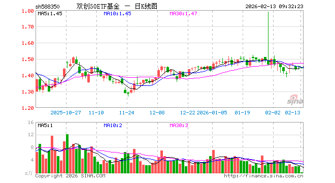 2月13日,双创50ETF基金(588350)开盘跌0.48%,报1.448元。双创50ETF基金(588350)重仓股方面,中际旭创开盘跌0.66%,新易盛跌1.02%,宁德时代跌0.07%,寒武纪跌1.12%,阳光电源跌1.31%,中芯国际跌0.30%,海光信息跌0.89%,胜宏科技跌0.65%,汇川技术跌0.40%,澜起科技跌0.78%。