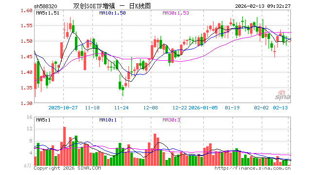 2月13日,双创50ETF增强(588320)开盘跌0.99%,报1.496元。双创50ETF增强(588320)重仓股方面,中际旭创开盘跌0.66%,新易盛跌1.02%,宁德时代跌0.07%,寒武纪跌1.12%,中芯国际跌0.30%,阳光电源跌1.31%,海光信息跌0.89%,胜宏科技跌0.65%,汇川技术跌0.40%,澜起科技跌0.78%。