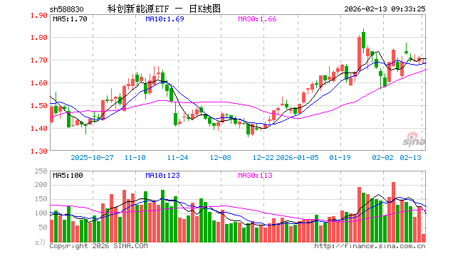 2月13日,科创新能源ETF(588830)开盘跌1.52%,报1.683元。科创新能源ETF(588830)重仓股方面,晶科能源开盘跌1.62%,阿特斯涨0.20%,天合光能跌0.73%,容百科技跌0.97%,大全能源跌0.21%,厦钨新能跌1.18%,嘉元科技涨0.30%,天奈科技跌0.47%,孚能科技跌0.07%,固德威跌0.53%。