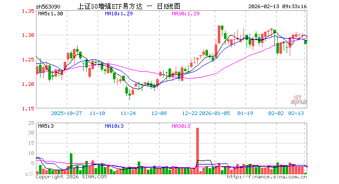 2月13日,上证50增强ETF易方达(563090)开盘跌0.77%,报1.288元。上证50增强ETF易方达(563090)重仓股方面,中国平安开盘跌0.59%,贵州茅台涨0.00%,沪电股份跌0.61%,药明康德跌0.01%,海尔智家跌0.04%,紫金矿业跌3.75%,国泰海通涨0.00%,中信证券涨0.00%,中国石油跌2.17%,豪威集团跌0.42%。