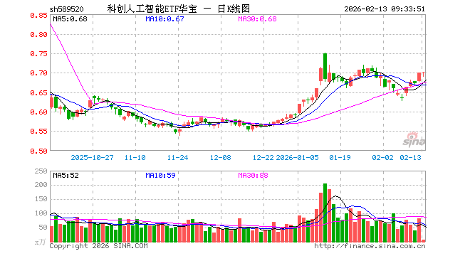 科创人工智能ETF华宝(589520)业绩比较基准为上证科创板人工智能指数收益率,管理人为华宝基金管理有限公司,基金经理为丰晨成、曹旭辰,成立(2025-03-05)以来回报为39.81%,近一个月回报为-0.48%。