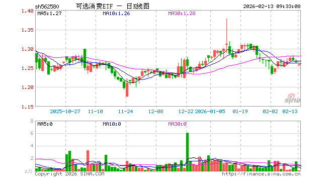 2月13日,可选消费ETF(562580)开盘跌0.71%,报1.256元。可选消费ETF(562580)重仓股方面,美的集团开盘跌0.36%,比亚迪跌1.22%,格力电器涨0.00%,三花智控跌0.99%,福耀玻璃跌0.50%,赛力斯跌0.01%,海尔智家跌0.04%,中国中免涨0.32%,上汽集团跌0.14%,拓普集团跌0.92%。