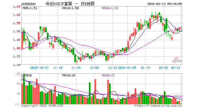 2月13日,科创50ETF富国(588940)开盘跌0.20%,报1.520元。科创50ETF富国(588940)重仓股方面,中芯国际开盘跌0.30%,寒武纪跌1.12%,海光信息跌0.89%,澜起科技跌0.78%,中微公司跌0.63%,金山办公跌0.96%,联影医疗涨0.01%,拓荆科技跌0.34%,芯原股份跌2.78%,沪硅产业跌0.15%。