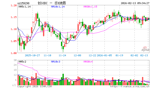 2月13日,创业板50ETF大成(159298)开盘涨0.00%,报1.146元。创业板50ETF大成(159298)重仓股方面,宁德时代开盘跌0.07%,中际旭创跌0.66%,新易盛跌1.02%,东方财富涨0.18%,阳光电源跌1.31%,胜宏科技跌0.65%,汇川技术跌0.40%,迈瑞医疗跌0.02%,天孚通信跌1.95%,亿纬锂能跌0.12%。