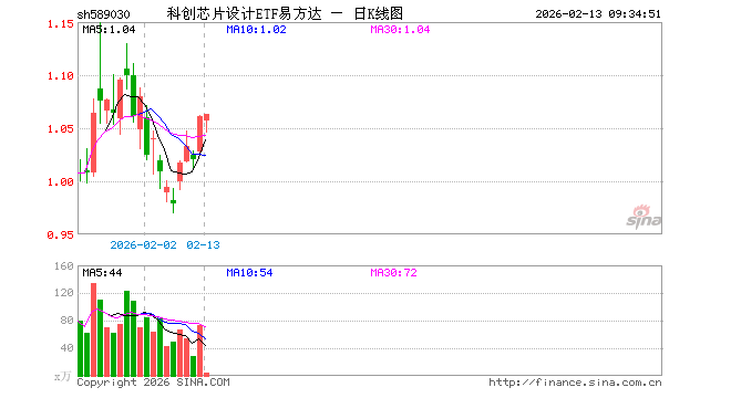 科创芯片设计ETF易方达(589030)业绩比较基准为上证科创板芯片设计主题指数收益率,管理人为易方达基金管理有限公司,基金经理为李栩,成立(2025-12-31)以来回报为6.05%,近一个月回报为5.64%。