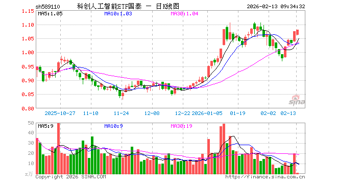 科创人工智能ETF国泰(589110)业绩比较基准为上证科创板人工智能指数收益率,管理人为国泰基金管理有限公司,基金经理为麻绎文,成立(2025-09-26)以来回报为7.42%,近一个月回报为-0.46%。