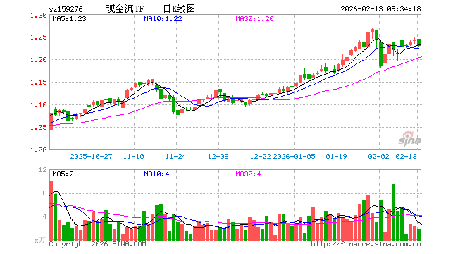 2月13日,现金流ETF汇添富(159276)开盘涨0.08%,报1.244元。现金流ETF汇添富(159276)重仓股方面,中国海油开盘跌2.93%,上汽集团跌0.14%,格力电器涨0.00%,中远海控涨0.00%,中国铝业跌1.82%,宝钢股份跌0.28%,长城汽车涨0.05%,正泰电器跌1.04%,中国联通涨0.00%,潍柴动力跌2.35%。