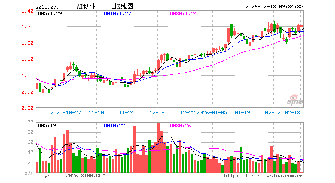 2月13日,创业板人工智能ETF华安(159279)开盘跌0.99%,报1.296元。创业板人工智能ETF华安(159279)重仓股方面,中际旭创开盘跌0.66%,新易盛跌1.02%,天孚通信跌1.95%,蓝色光标跌1.29%,协创数据跌1.06%,同花顺涨0.26%,润和软件跌0.22%,北京君正跌0.79%,昆仑万维跌3.19%。