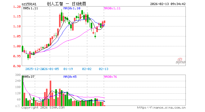 2月13日,科创创业人工智能ETF永赢(159141)开盘跌0.71%,报1.115元。科创创业人工智能ETF永赢(159141)重仓股方面,中际旭创开盘跌0.66%,新易盛跌1.02%,寒武纪跌1.12%,澜起科技跌0.78%,金山办公跌0.96%,芯原股份跌2.78%,协创数据跌1.06%,昆仑万维跌3.19%,北京君正跌0.79%。