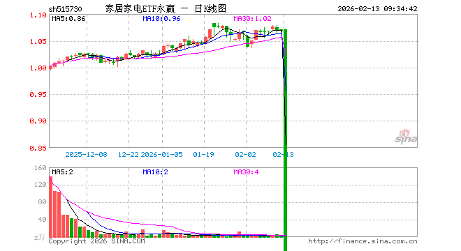 家居家电ETF永赢(515730)业绩比较基准为中证家居家电指数收益率,管理人为永赢基金管理有限公司,基金经理为储可凡,成立(2025-11-14)以来回报为6.84%,近一个月回报为1.39%。