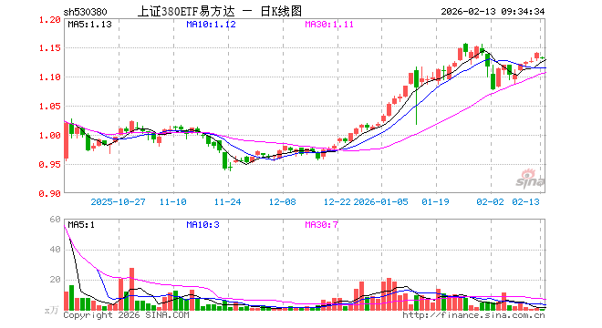 上证380ETF易方达(530380)业绩比较基准为上证380指数收益率,管理人为易方达基金管理有限公司,基金经理为张泽峰,成立(2025-09-22)以来回报为14.02%,近一个月回报为3.01%。