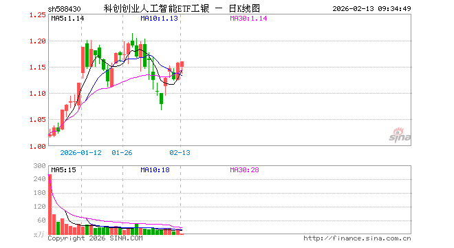 科创创业人工智能ETF工银(588430)业绩比较基准为中证科创创业人工智能指数收益率,管理人为工银瑞信基金管理有限公司,基金经理为杨广钊,成立(2025-12-17)以来回报为15.68%,近一个月回报为-2.16%。
