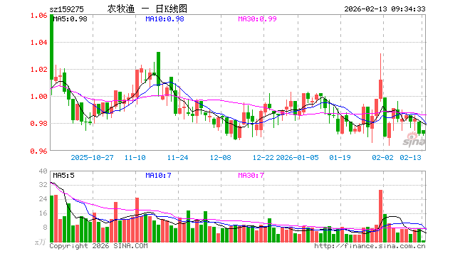 2月13日,农牧渔ETF(159275)开盘涨0.31%,报0.975元。农牧渔ETF(159275)重仓股方面,牧原股份开盘涨0.00%,温氏股份涨0.19%,海大集团跌0.09%,正邦科技涨0.00%,新希望涨0.12%,梅花生物涨0.00%,生物股份涨0.00%,大北农涨0.00%,隆平高科涨0.00%,北大荒跌0.07%。