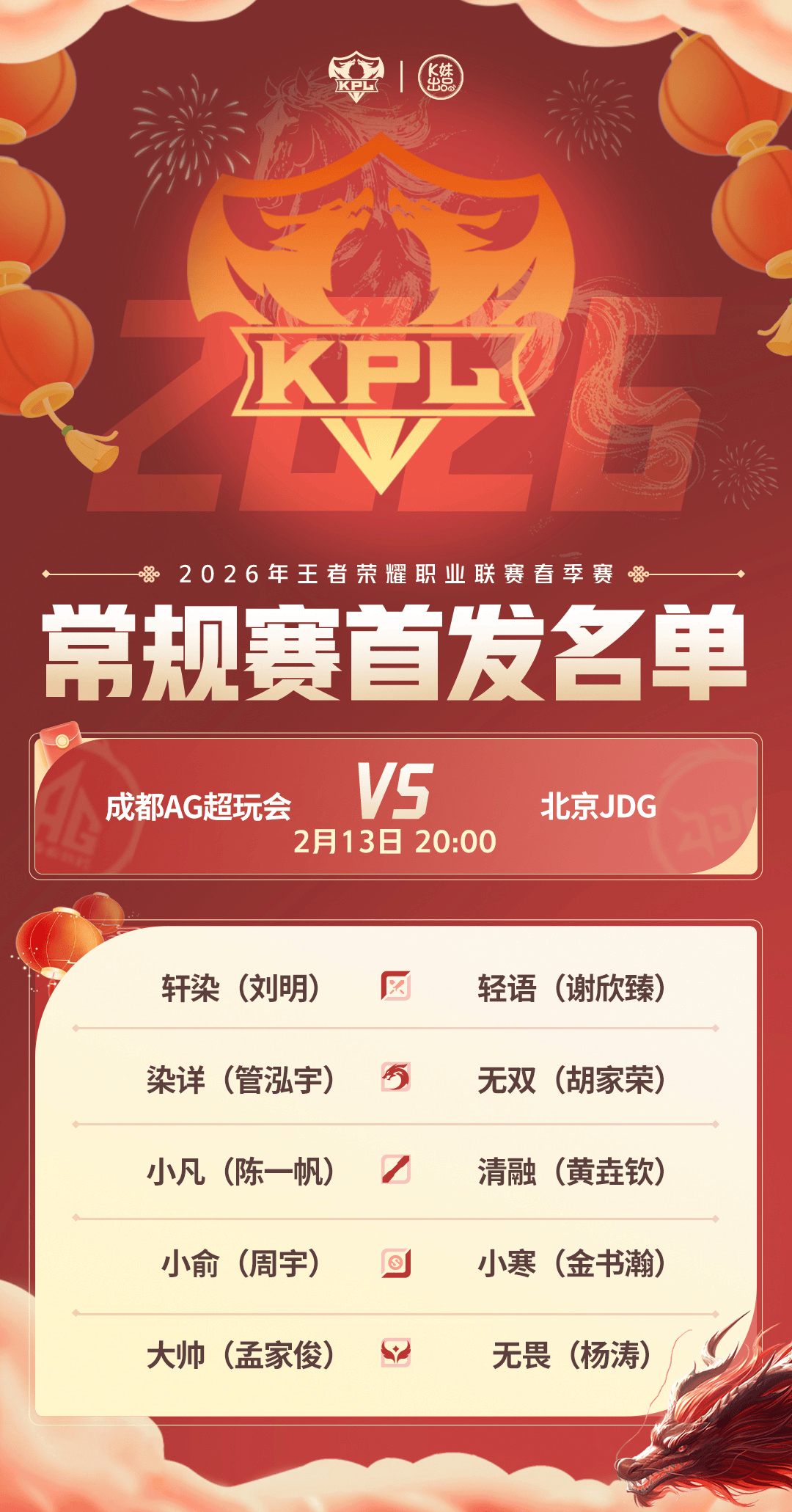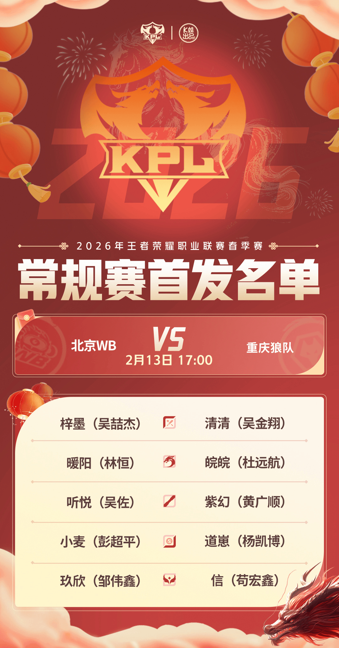 2026KPL春季赛常规赛第二轮W2D4[首发名单]送达!