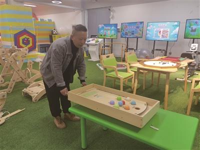 徐保兴正在展示“四平八稳”适老玩具。夏晓腊摄