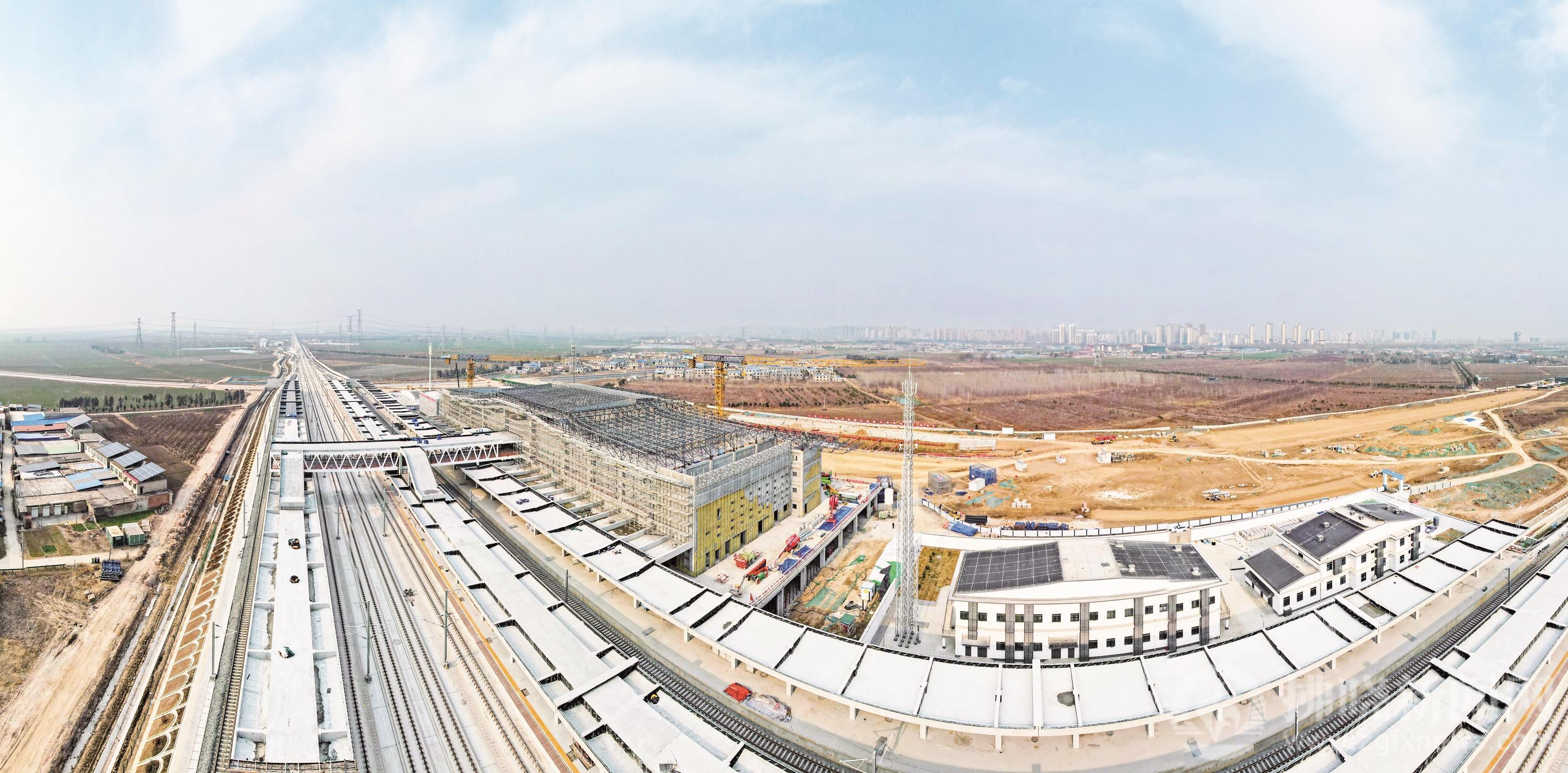 2月10日,航拍淮蚌高铁(原淮宿蚌城际铁路)宿州西站建设现场。继站房主体结构顺利封顶后,该项目近期圆满完成关键工序工期目标,为后续装饰装修、机电安装等工序推进奠定了坚实基础。淮蚌高铁宿州西站建设完成后,将进一步强化宿州区域交通节点功能,助力皖北深度融入长三角一体化发展,为区域经济社会高质量发展注入强劲动能。