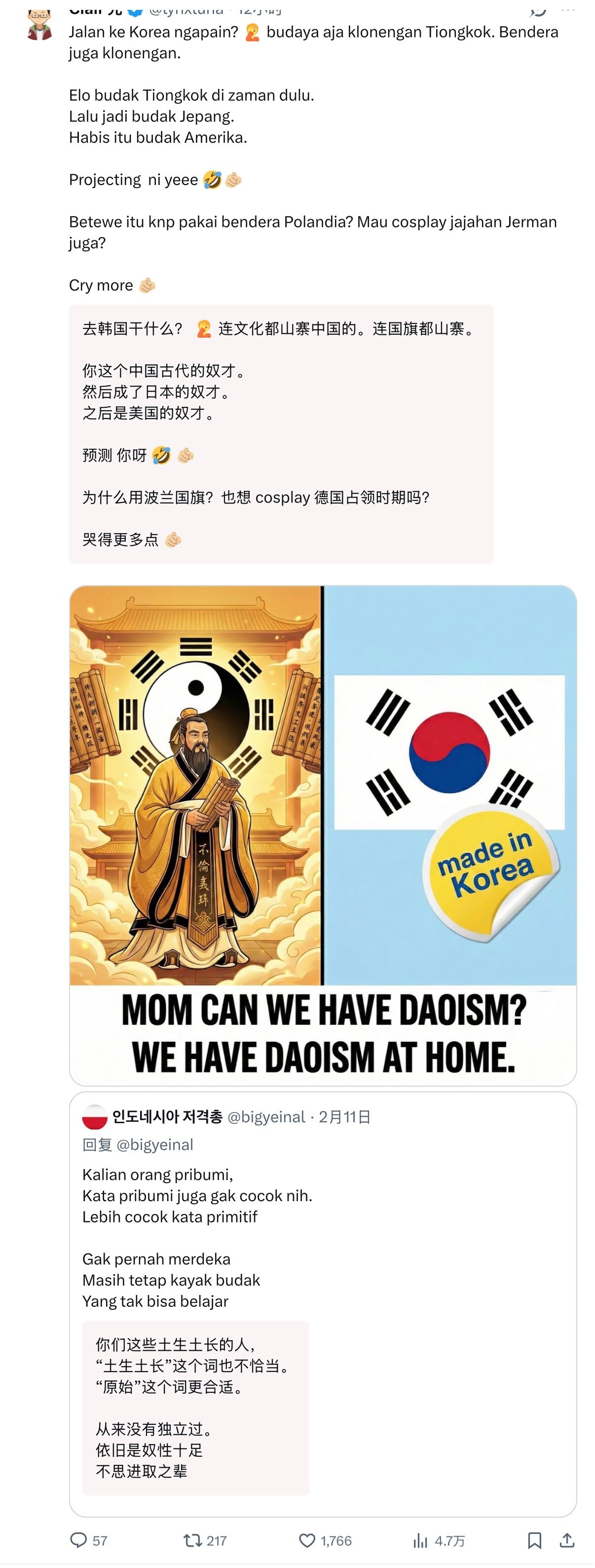 🔻东南亚网民,尤其是印尼马来西亚网民,大量使用中文相关梗痛击韩国网民。🔻感谢