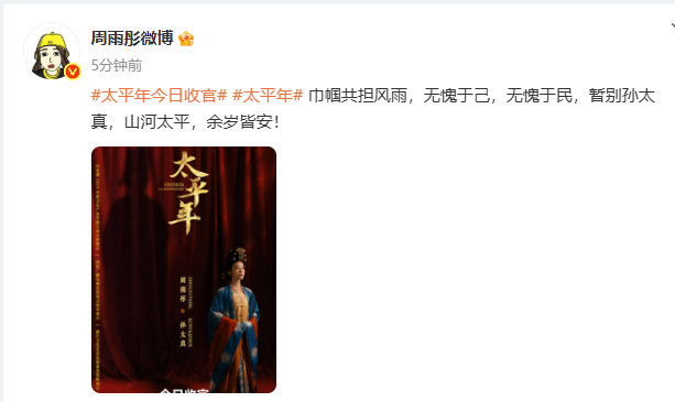 周雨彤暂别孙太真 周雨彤太平年收官文 周雨彤太平年收官文暂别孙太真,山河太平,余
