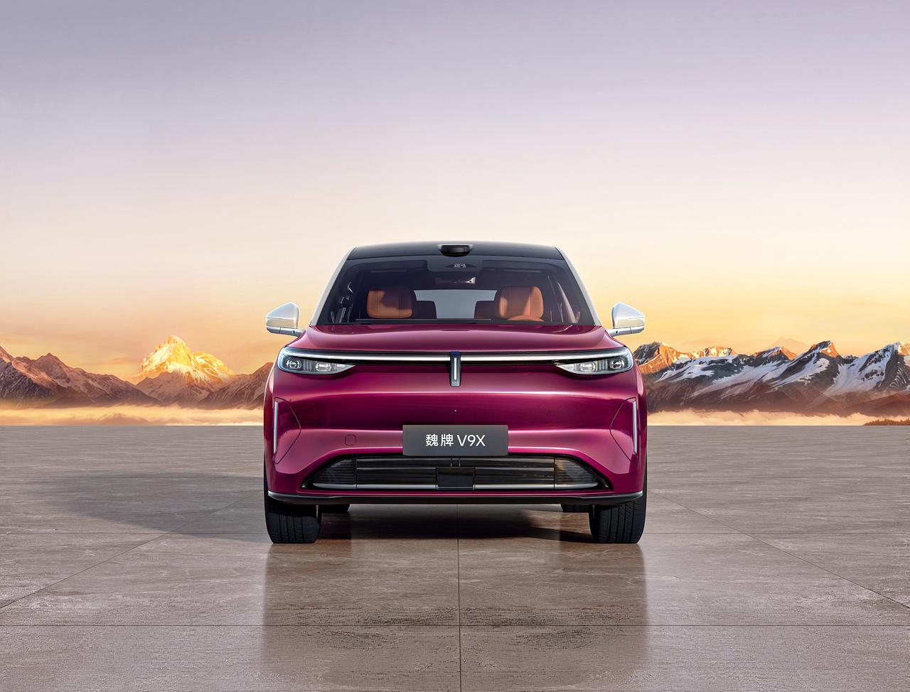 近日,长城汽车归元S平台的首款车型,大型SUV魏牌V9X已经申报并发布了官图。他是魏牌最新的AI豪华6座旗舰SUV,此次发布后他离我们越来越近了。 新车采用双色车身设计,长宽高分别为5299/2025/1825mm,轴距为3150mm,采用6座布局。他的外观大气:车头采用封闭式前脸,贯穿式环形灯带配合可发光LOGO,前包围两侧集成了智驾小蓝灯以及转向灯,下部分采用主动闭合式进气格栅。 车头顶部配有激光雷达,预计会搭载原生AI智能体和VAL大模型,会是长城汽车最先进的智能科技落地 动力采用2.0T发动机组成的插混系统,采用800V高压架构,配合6C电池,支持超快充技术,纯电续航为240公里和363公里两种容量。他的满电馈电零百加速都在5秒之内,最高车速达到210公里每小时,据悉车辆还装备了空气悬架。