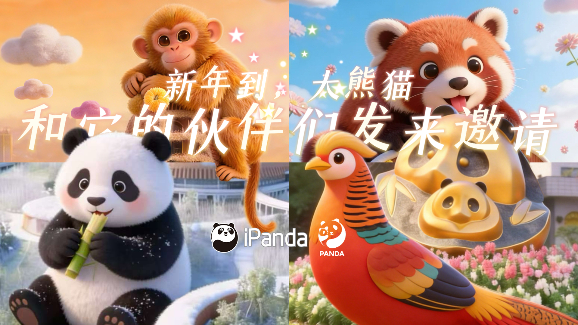 【速速分享收藏!大熊猫和伙伴们申请登上你的新年封面】这个新春,马上有“金”喜,马上有“红”运,马上有“冰”纷,马上有“红”福!⬇️一起用新壁纸,换新装吧!AI上大熊猫 熊猫贺岁福马迎春