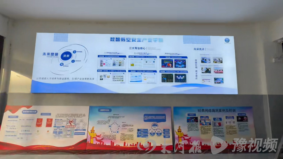 “在当今数字经济浪潮奔涌向前,低空经济、人工智能、网络安全等战略性新兴产业异军突起的时代背景下,既为社会驱动经济高质量发展带来了新引擎,也为职业教育带来了前所未有的发展机遇。”周口颍河职业中等专业学校数智低空安全产业学院院长王朝野告诉记者,周口颍河职业中等专业学校锚定契机,经过深入调研、反复论证,决定增设无人机驾驶与维护、网络工程、网络安全、人工智能、装配维护五大核心专业,并携手行业龙头企业,共同组建数智低空安全产业学院。