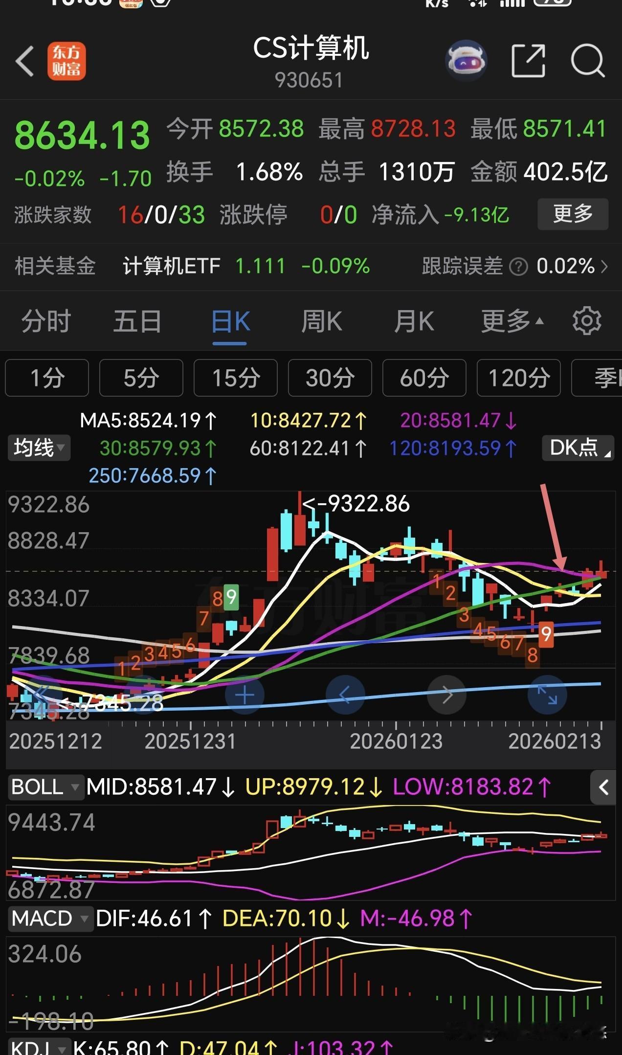 大数据与计算机两个板块,是为数不多的突破20日线压力位的大科技板块。中证数据目前到了前高压力位附近,冲过去还能摸前面最高点,现在是谨慎看多,稳健重仓的适当止盈部分。 中证计算机设备,刚刚突破20日线压力位,5日线上穿10日线,macd绿柱逐渐缩短,可继续持仓待涨。