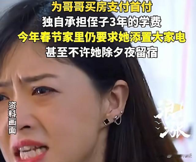 湖南,一女子出生在一个重男轻女的家庭,平时父母就找她薅羊毛,工资上交然后贴补给哥哥。即便女子结婚了,父母也打电话要钱,让她无条件帮助哥哥,支付购房首付,还给侄子缴纳3年学费。年底了,父母又打电话过来,让她购买冰箱、大彩电,但是又不肯让女子在除夕夜留宿。女子陷入焦虑,不知道该怎么处理这段关系了。 三湘都市报报道了这则新闻。 当时女子就要照办了,幸亏朋友一句话点醒了她。 随着春节的脚步逐渐靠近,本来应该是满心欢喜、阖家团圆的日子,但是对于陈女士来说,她却一点也开心不起来。 因为她的父母,刚刚打电话过来,让她给娘家购买大冰箱、大彩电。 想起她这个总是来榨干她的父母,陈女士就很忧愁。从小的时候开始,父母就重男轻女,眼里只有他们的儿子。 从小时候开始,只要家里有吃的、喝的、穿的、用的,都是先让哥哥享用,回头才考虑到陈女士这个做女儿的。 本来以为,长大了,嫁人了,陈女士可以脱离这个不公平的家,谁知道,娘家的手,一直就伸到了她的夫家。 在 陈女士结婚之后,本来丈夫给的彩礼钱,全都被父母交到了哥哥的手里。现在,哥哥说要结婚要买房,又开始找陈女士了。 想起哥哥要买房的时候,陈女士的父母就打电话过来哭诉:“哎呀,你的哥哥没有出息,你就帮一下忙吧,家里实在是太困难了!” 抵挡不住父母的攻势,无奈,陈女士拿出了自己的积蓄,帮助哥哥支付了首付。 后来哥哥成家生了小孩,这下好了,又开始纠缠陈女士,让她帮忙支付侄子的学费。 就这样,软弱、善良的陈女士,又给侄子支付了3年的学费。 父母每次都这样,说自己年纪大了,没用了,哥哥嫂子还需要偿还房贷,压力很大,所以一定要让妹妹伸出援手。 在他们看来,女儿是他们生的,只管生,不管养,而且还往差里对待。最后女儿工作了,有钱了,就成为他们付钱的工具了。 可看到了这一次,父母又打电话了,说家里要添置大冰箱、大彩电,也要 这个出阁的女儿来承担。 陈女士很无奈,就找朋友诉诉苦,将内心 的苦水倒出来。毕竟,这么多年的委屈,实在是太憋屈了。 朋友听完之后,拍了拍陈女士的肩膀说:你还是先把自己顾好吧,你也有你自己的家。 说完这句话,陈女士才算清醒,她感觉到,自己的生活压力还很大,怎么能去帮扶人家呢,而且他们早就不拿自己当做女儿了。 况且,每年就算是除夕夜回去,父母都不肯她过夜,这把她当做女儿吗? 要钱的时候哭哭啼啼,等到女儿需要爱的时候,却如此心狠,这一点,实在是令陈女士寒心。 为了缓解自己的焦虑,陈女士还去找了心理医生求救,希望可以尽快让自己走出这份委屈。 本案释法: 陈女士结婚之后,还拿钱给哥哥付房款首付、甚至还给侄子交学费,她的这些钱,丈夫有权追回吗? 根据《民典法》第1062条规定,婚姻存续期间的所得财产一般属于夫妻的共同财产,双方拥有平等的处理权。 如果不是婚后生活的日常开销,如其他的大额支出,房款首付、承担他人子女学费等,原则上需要经过夫妻双方协商一致。 陈女士的这些钱款,如果没有经过丈夫的同意,擅自挪用夫妻共同财物,贴补给娘家人,很有可能就构成“擅自处分”,属于有争议的处分行为。 然而丈夫却无法直接找亲戚索要追偿,之后如果两个人闹离婚,丈夫则可以主张多分的离婚财产。 所以,这位陈女士还是得要清醒一点,闹到最后,自己还是没法均衡分走财产,所以说,该赔偿的还是要赔偿。但是离婚之后,娘家肯定甩脸不认人了,谁还认得你这位好心的女儿呢! 都活到41岁了,还是后不明白,自己一直被娘家拿捏,让丈夫怎么想。付出的每一分钱,现在都有丈夫的一份,这个陈女士脑子也真的太简单了。 而且父母对于陈女士的态度,出嫁了,娘家的床都不给睡,这样的女儿都不如外人,所以趁机跟娘家人保持距离,要跟他们的无理索取说“不”。 对此,大家都怎么看呢,不妨评论区留言,一起来讨论吧!