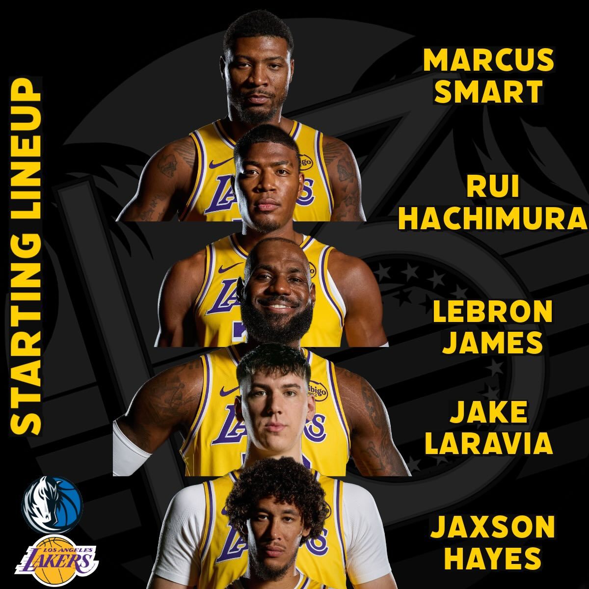 今日首发:斯玛特、拉拉维亚、八村、老詹、海斯!(东契奇预计在全明星赛后回归,艾顿今日膝盖酸痛缺席比赛,小里依旧有25-30分钟的时间限制)独行侠vs湖人洛杉矶湖人
