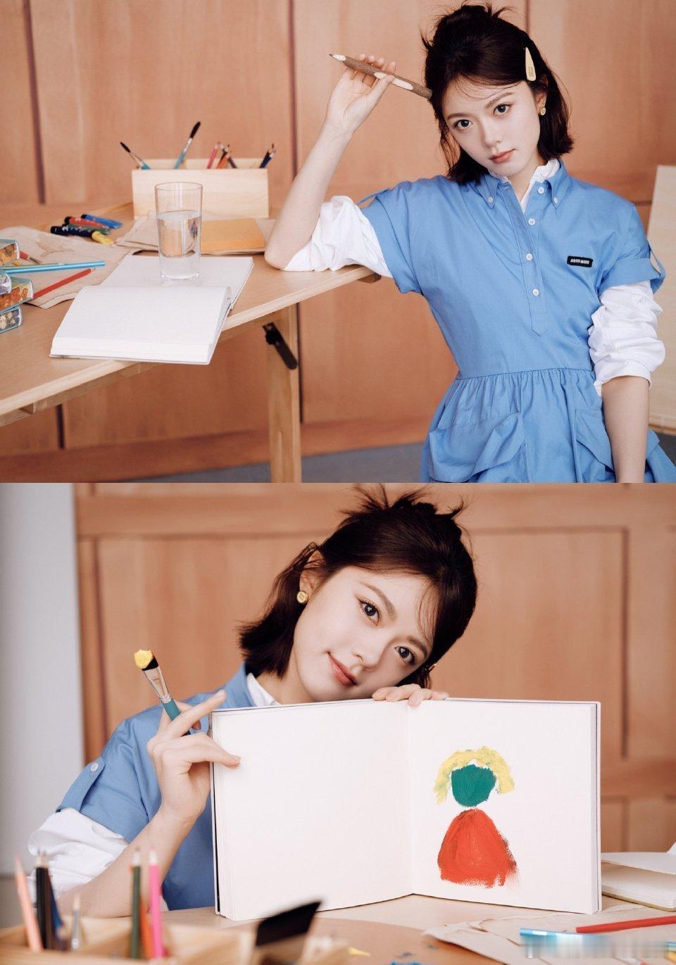 赵今麦蓝调文艺范赵今麦我的靠谱学姐 蓝调氛围感天花板!赵今麦这身穿搭干净纯粹,文艺气质拉满,半丸子头灵动俏皮,靠谱学姐超圈粉。