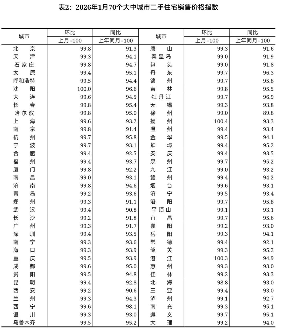 国家统计局的数据显示,1月份,北京二手住宅销售价格环比下降0.2%,是四个一线城市中降幅最小的。