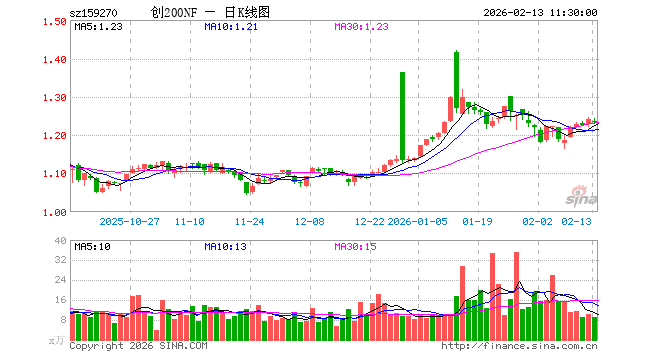 2月13日,截止午间收盘,创业板200ETF南方(159270)跌0.56%,报1.234元,成交额1146.30万元。创业板200ETF南方(159270)重仓股方面,香农芯创截止午盘涨1.33%,天华新能涨1.26%,赛微电子跌4.95%,上海瀚讯跌1.35%,光库科技跌8.15%,汉得信息跌1.81%,鹏辉能源涨1.33%,星源材质涨1.83%,太辰光跌6.87%,四方精创涨0.78%。