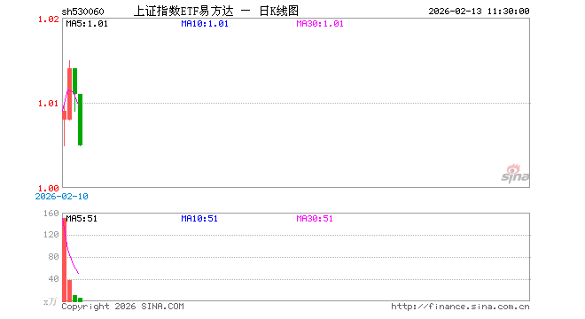 2月13日,截止午间收盘,上证指数ETF易方达(530060)跌0.59%,报1.005元,成交额488.82万元。上证指数ETF易方达(530060)重仓股方面,农业银行截止午盘跌1.51%,工商银行跌0.28%,贵州茅台涨0.43%,中国石油跌4.53%,工业富联跌0.81%,中国人寿跌0.98%,招商银行跌0.41%,紫金矿业跌3.45%,中国平安跌1.49%,中国神华跌2.42%。