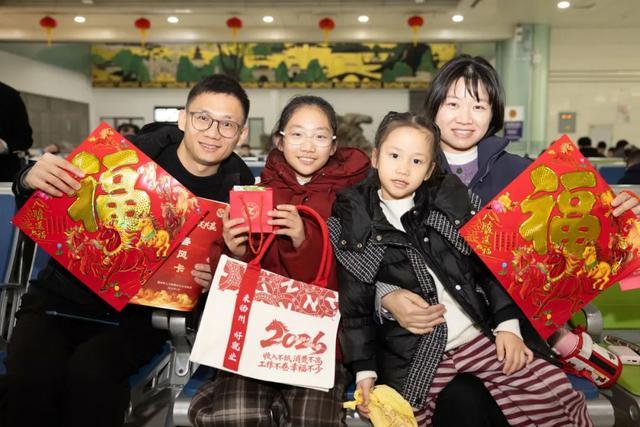 活动现场还为候车群众送上了具有非遗元素的伴手礼——一张福字寄托新春期盼,一幅年画增添节日喜气,大家将传统文化与满满年味一同带回家,让就业服务不再局限于“找工作”,更成为传递扬州文化、凝聚情感共鸣的重要载体。
