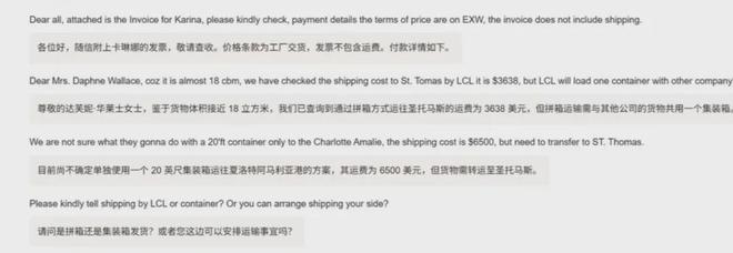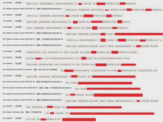 从沟通邮件来看,这些采购涉及了佛山大大小小多家家居装饰公司,订好后直接集装箱装好发往迈阿密。
