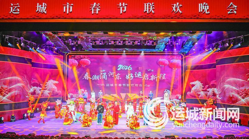 本报讯(记者游映霞)东风浩荡,河东大地春意盎然;策马奋进,好运之城再启新程。2月12日晚8点,“春潮涌河东好运启新程”2026年运城市春节联欢晚会在运城会展中心精彩上演。晚会由市委、市政府主办,融合舞蹈、歌曲、器乐合奏、小品、戏曲、鼓乐等多种艺术形式,为全市人民献上一场年味浓郁、底蕴深厚的文化盛宴,生动展现了新时代河东儿女昂扬向上、奋楫争先的精神风貌。