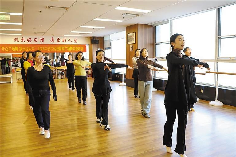 本报讯(记者张欢)近日,安次区文化馆“开心广场舞欢乐过大年”广场舞公益培训课程正式开班,众多广场舞爱好者齐聚一堂,在专业老师的带领下学习迎新春舞蹈曲目。