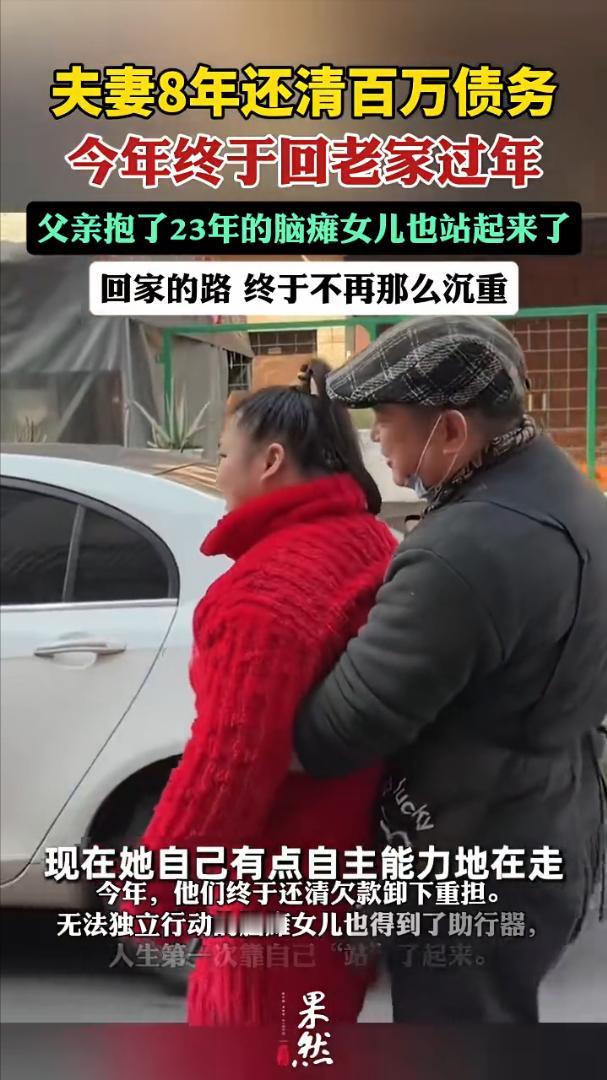 浙江杭州,夫妻因做生意失败还要治疗脑瘫的女儿欠下百万元债务,为了还债夫妻带着脑瘫女儿在外开店8年没有回老家,今年还清债务后夫妻二人带着女儿回老家过年。 2018年,陈建军和李梅一记原本在家乡经营小生意,因投资失败背上了百万债务。三岁的小女儿被确诊为脑瘫,急需长期治疗。 夫妻二人为了还债务,拿着账本带着女儿毅然离开家乡,来到杭州重新开始。他们做过多种工作,后来在杭州租下一间小小的店面,用仅剩的积蓄和亲友的借款,开起了一家小餐馆。 从此夫妻二人开始了“全年无休”的生活。每天清晨五点准时开门,晚上夜深了才关门,就这样每天工作超过12个小时。8年时间里他们没有休息过,把挣来的每一分钱除了经营和生活必要的开支外,都用来还了债务。 当今年账本上的最后一笔债务还清后,压在夫妻二人心头上8年的重担终于卸了下来,他们的女儿也在夫妻二人的不懈努力和坚持下,重新站了起来。而他们也决定今年春节休息两天,带着女儿回老家过年。 当还清最后一笔债务时夫妻二人热泪盈眶,夫妻二人说道:“我们想告诉所有人,无论遇到什么困难,都不要放弃。只要坚持,总会有希望。 他们的事迹,也感动了很多人,也引发了网友的热议,有的网友说,有人不占便宜就是吃亏,而在他们眼里,还清债务就是如释重负,就等于赚到了,看到了光明,女儿的病一定会康复。 也有的说,真诚祝福。这8年你们吃了太多苦,往后的路上天会保佑你们一路康庄大道! 还有的说,看到这,想起债台高筑的前老板!果断放弃,人一旦没有迎刃而解的决心!就会有随波逐流的惰性。 这是一对非常有担当的中国夫妻,地地道道的朴实诚信的中国底层的普通人! 终于松快啦!愿这份迟来的开心,就是他们好日子的开端,往后的路还长,只要一家人整整齐齐、心往一处凑,再难的坎儿都能跨过去! 女儿的病情的好转也许就是上天对这对夫妻的奖赏,有时候真的是人在做天在看呀!我始终坚信,好人终会有好报的!