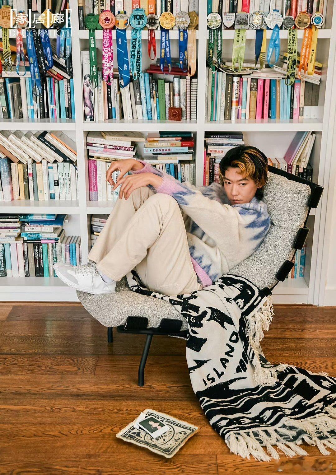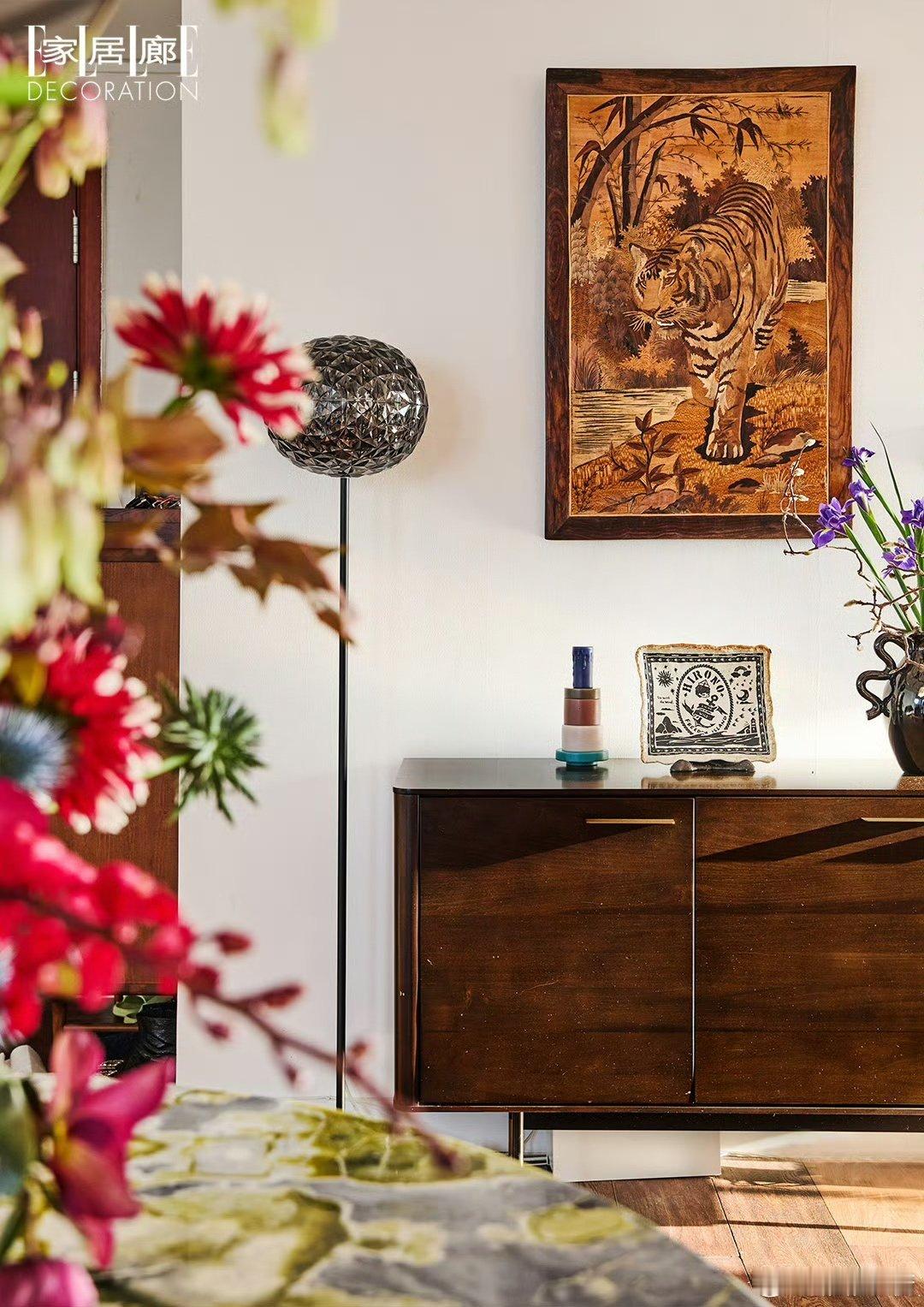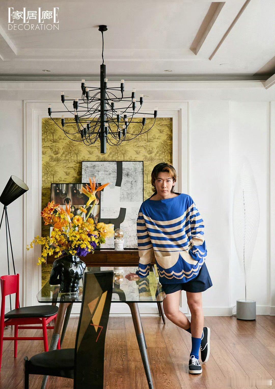 姜思达条纹衫撞进鎏金壁纸,像海平线吻上落日熔金。黑犬鼻尖蹭过掌纹,把时光酿成毛茸